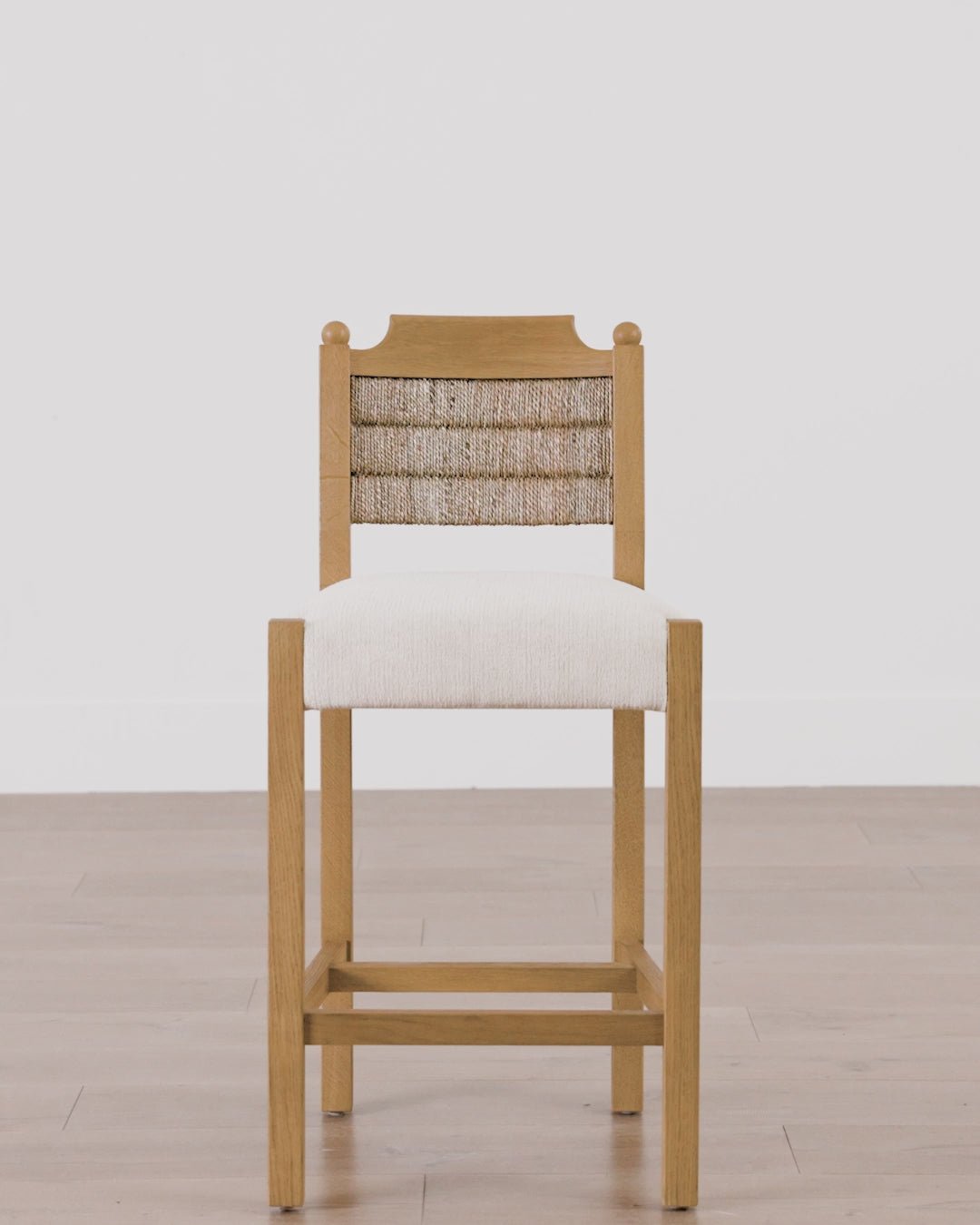 Vintage-inspired and crafted with a blend of mixed materials, our Alberta Counter Stool balances both traditional and modern aesthetics. The honey oak finished frame and textured back woven with seagrass bring a natural feel to the chair’s classic structure. Upholstered in soft and resilient cotton-linen performance blend, the seat offers depth for a generous sit that invites you settle in. Durable and detailed, it brings a sophisticated yet approachable element to your kitchen counter.