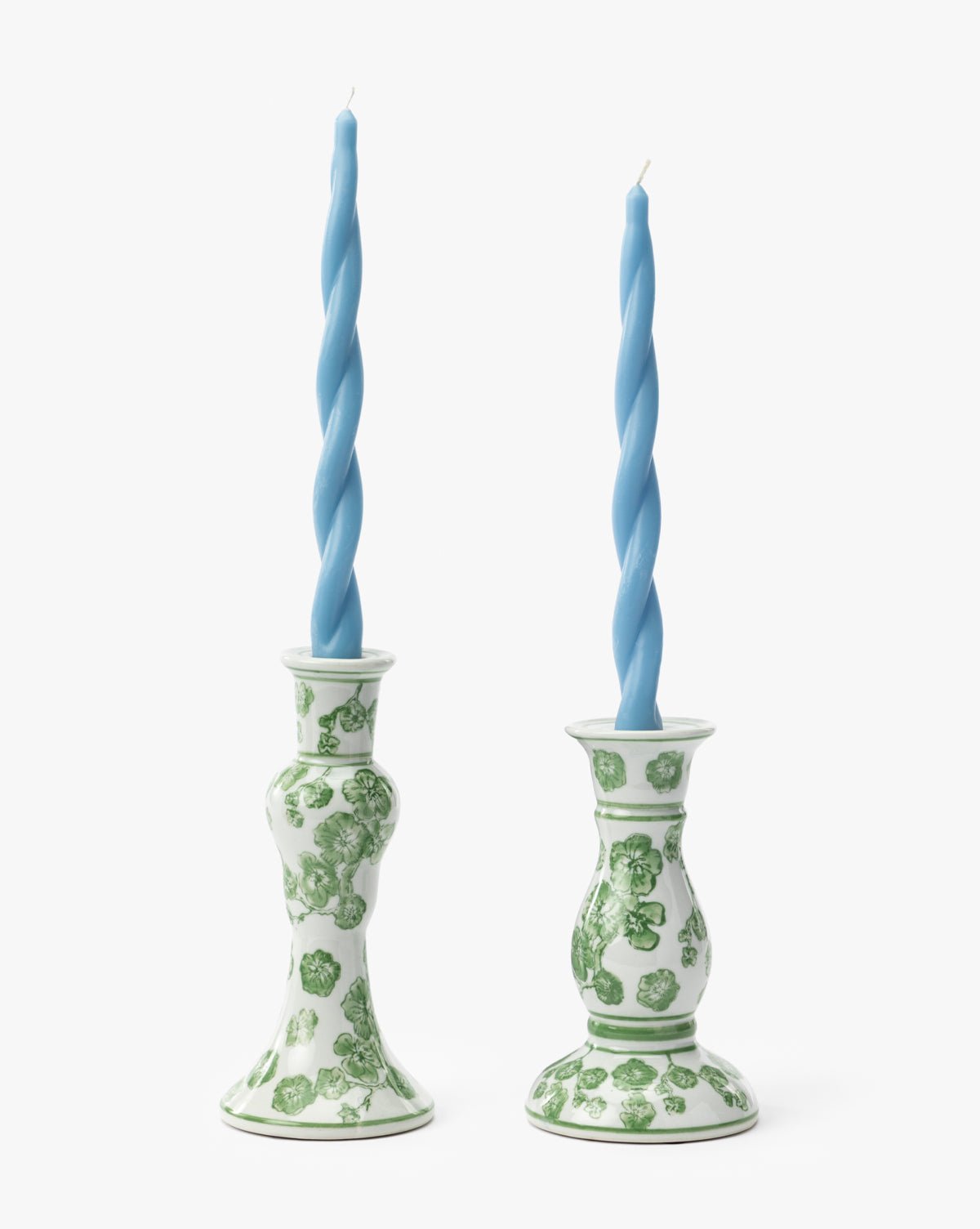 Elevate your tablescape with these sculptural twisted tapers, crafted in a soft blue hue that brings a fresh, seasonal touch to any setting. Their graceful spiral silhouette adds subtle movement and charm, whether styled on a mantel or gathered at the dining table. Designed to burn cleanly and beautifully for effortless ambiance.